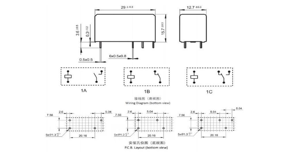 Outline dimension, Wiring diagram, PCB layout (Unit:mm)