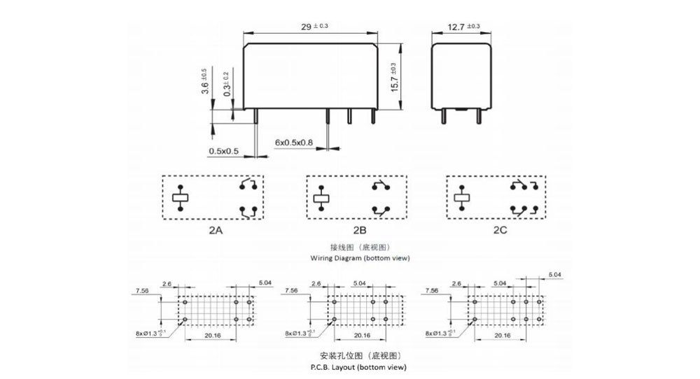 Outline dimension, Wiring diagram, PCB layout (Unit:mm)