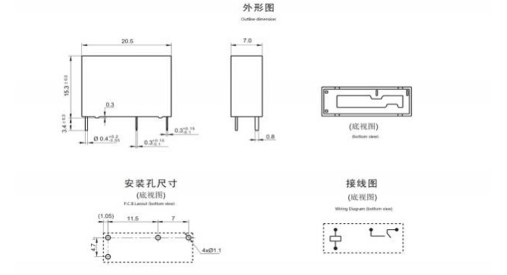 Outline dimension, Wiring diagram, PCB layout (Unit:mm)