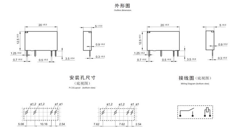 Outline dimension, Wiring diagram, PCB layout (Unit:mm)